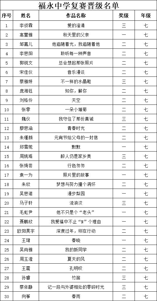 自2021年1月,活动征稿启动以来,获得了深圳市广大中小学生、教师、文学爱好者的热烈响应积极参与,吸引了深圳百余所学校的上万人关注报名。现公布福永中学晋级复赛名单如下: