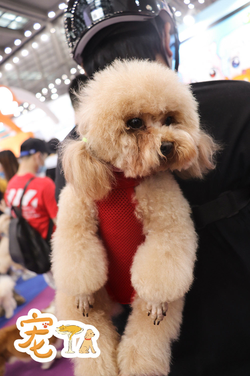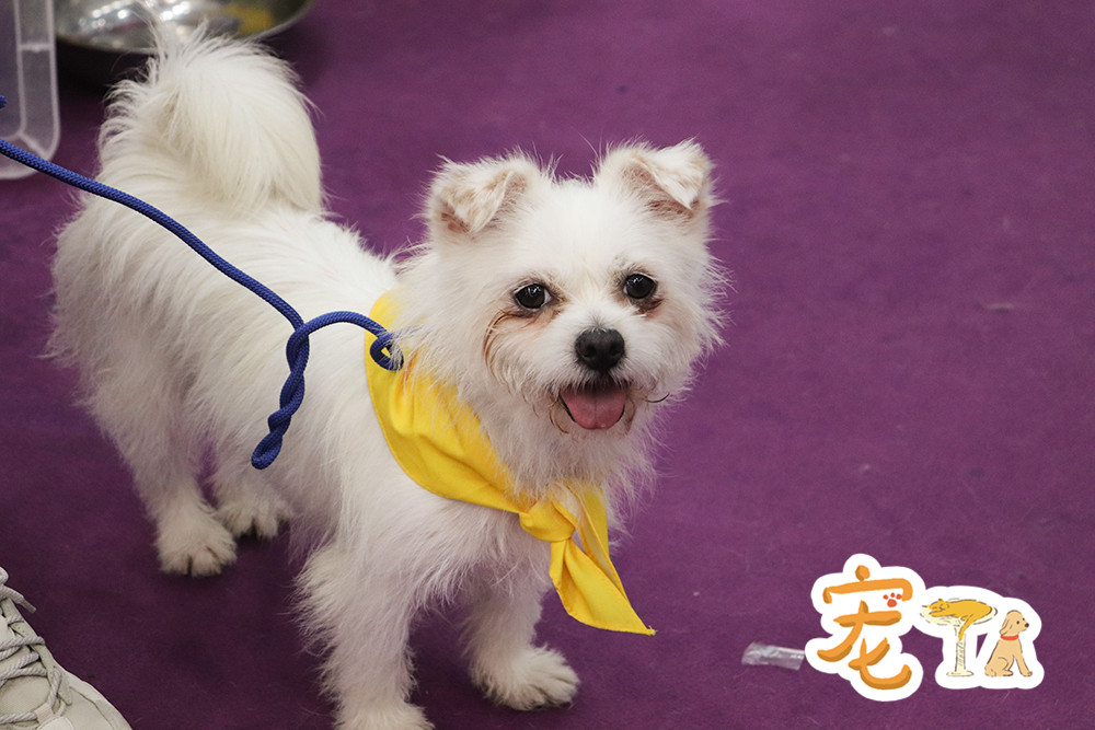 逛展的观众带来的幼年宠物犬。