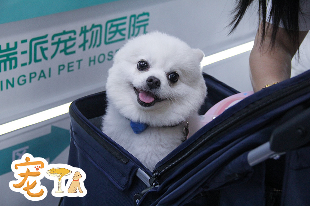 现场有很多主人使用推车带着自家狗狗逛展。