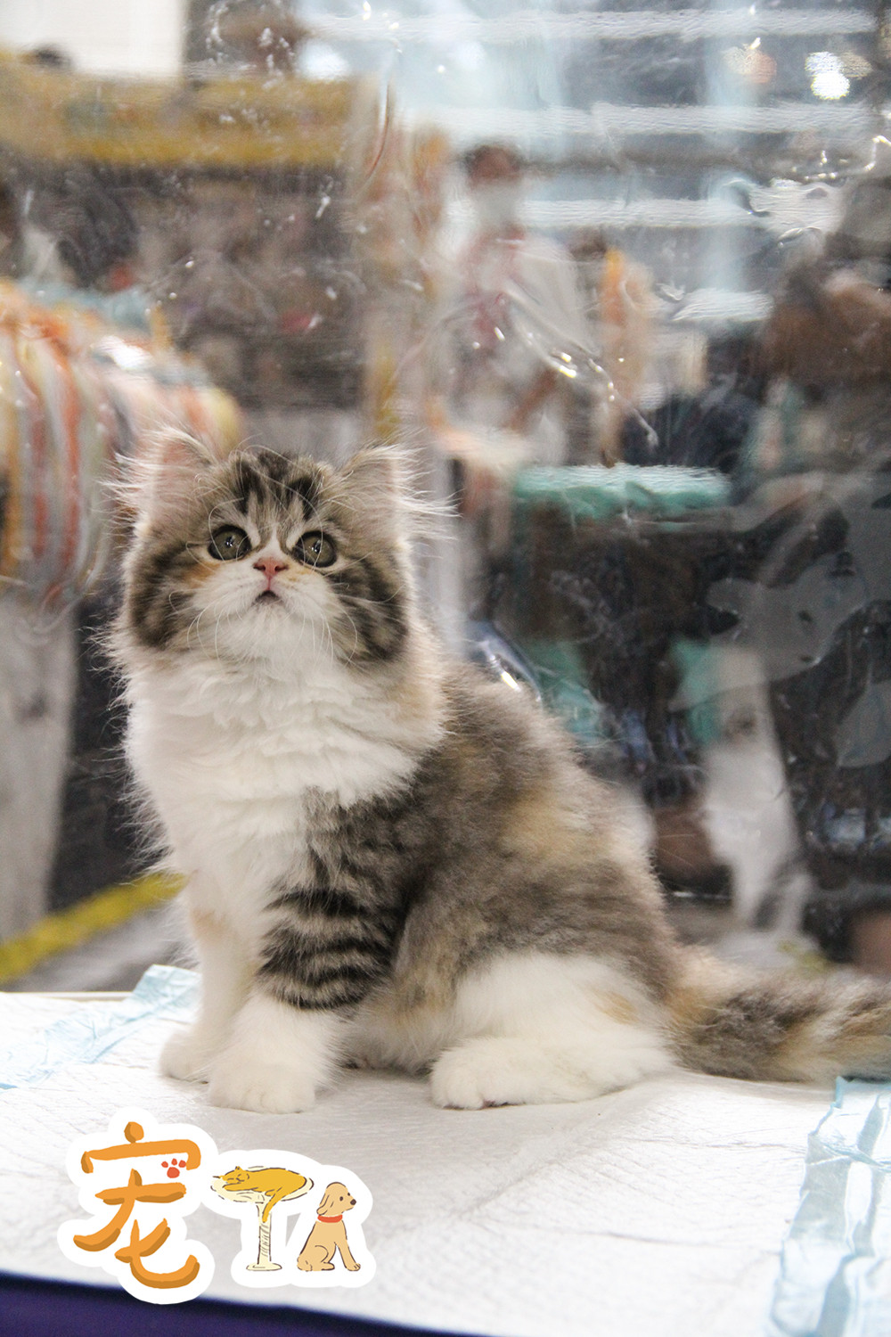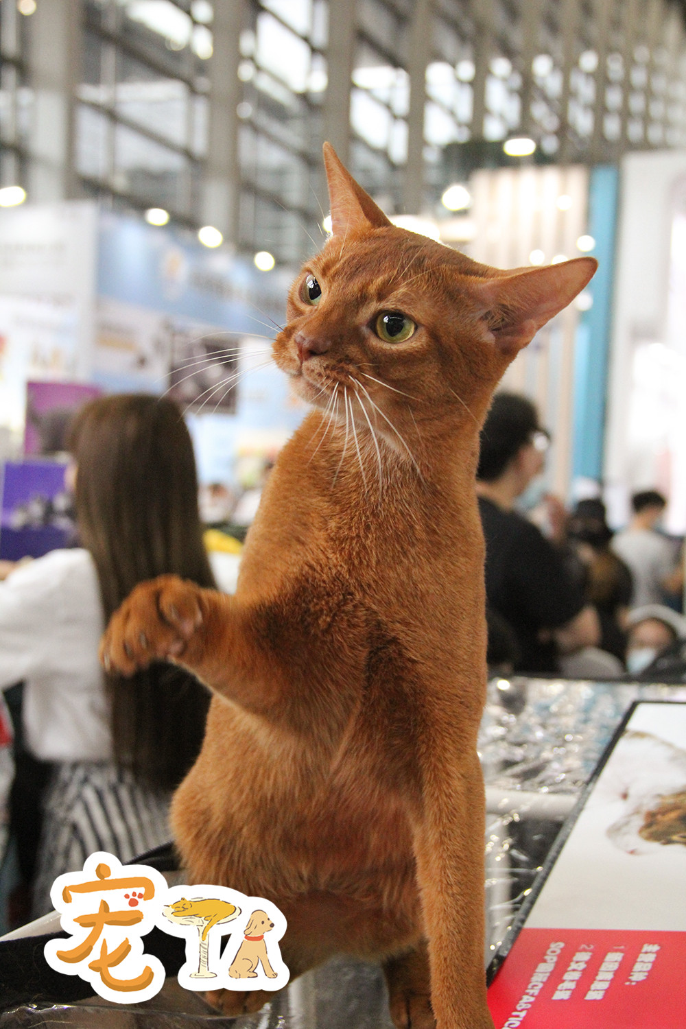 为了减少传染,一些猫咪活体的展商要求观众戴着一次性手套触摸猫咪。
