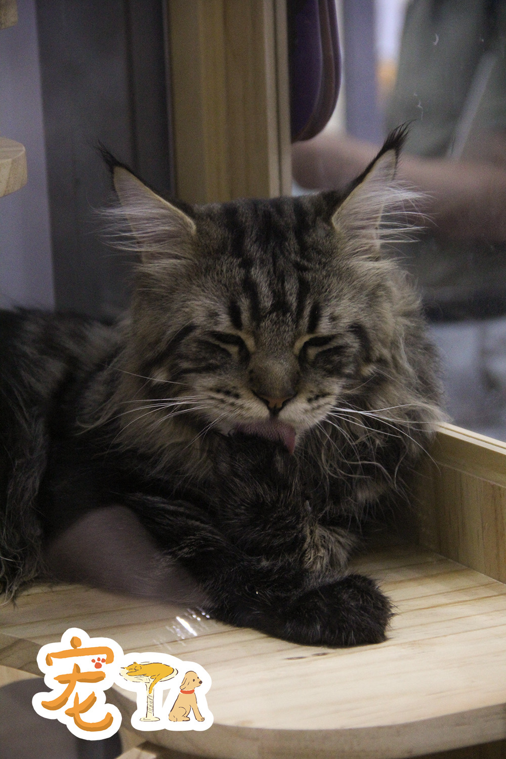 宠物活体展位,正在梳理毛发的缅因猫。