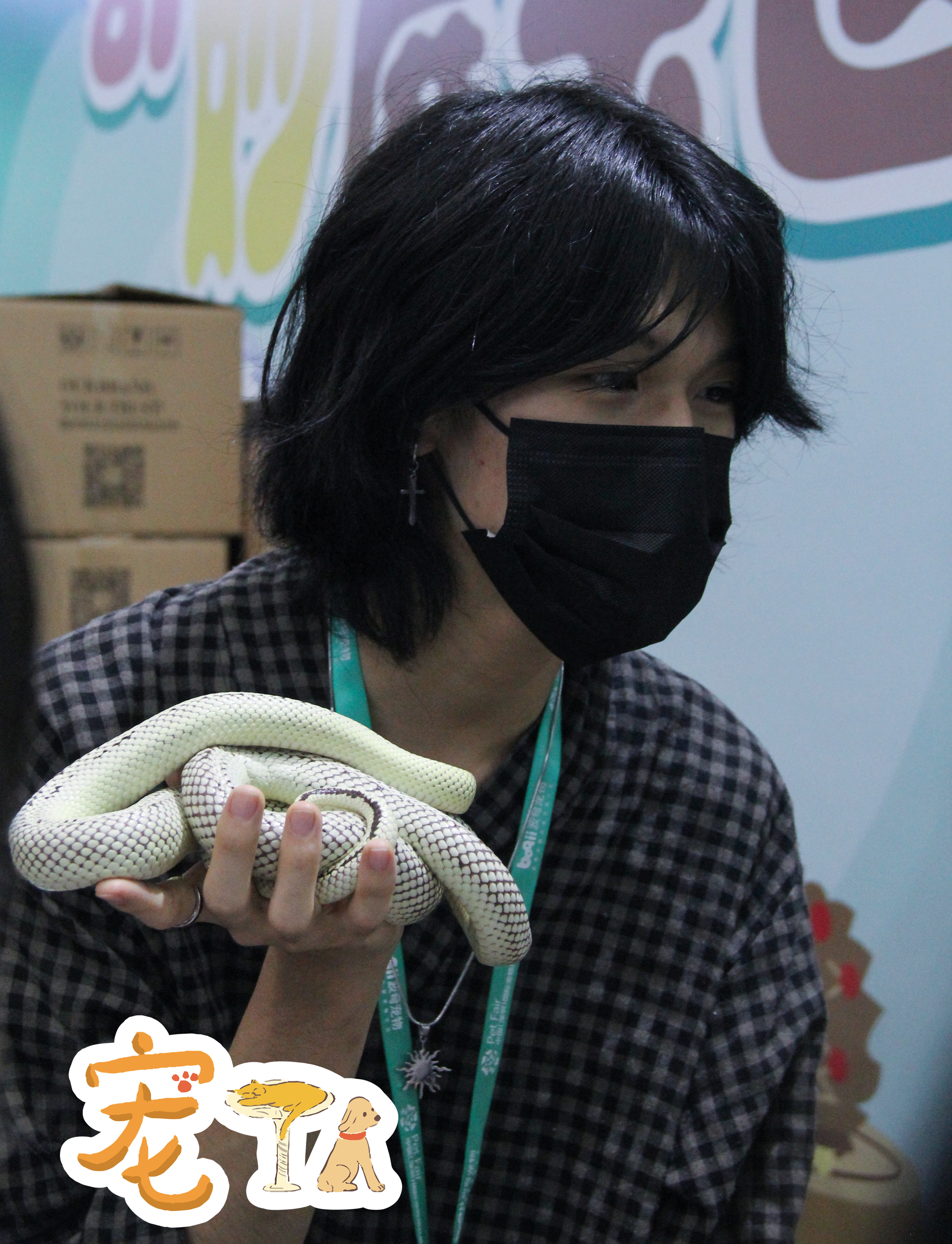 异宠展示区的工作人员在向观众介绍饲养蛇的注意事项。