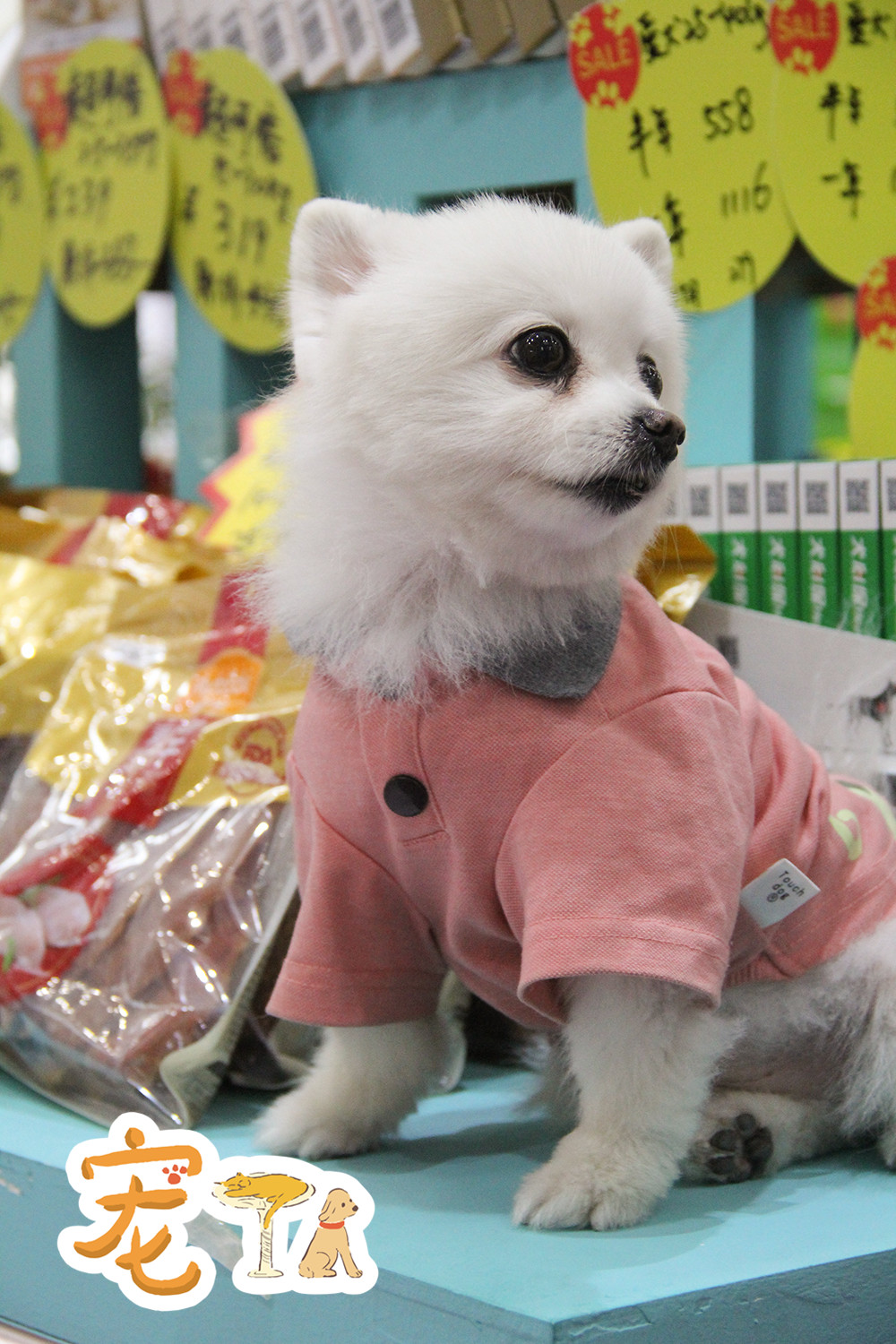 商品展台上的店员狗狗。
