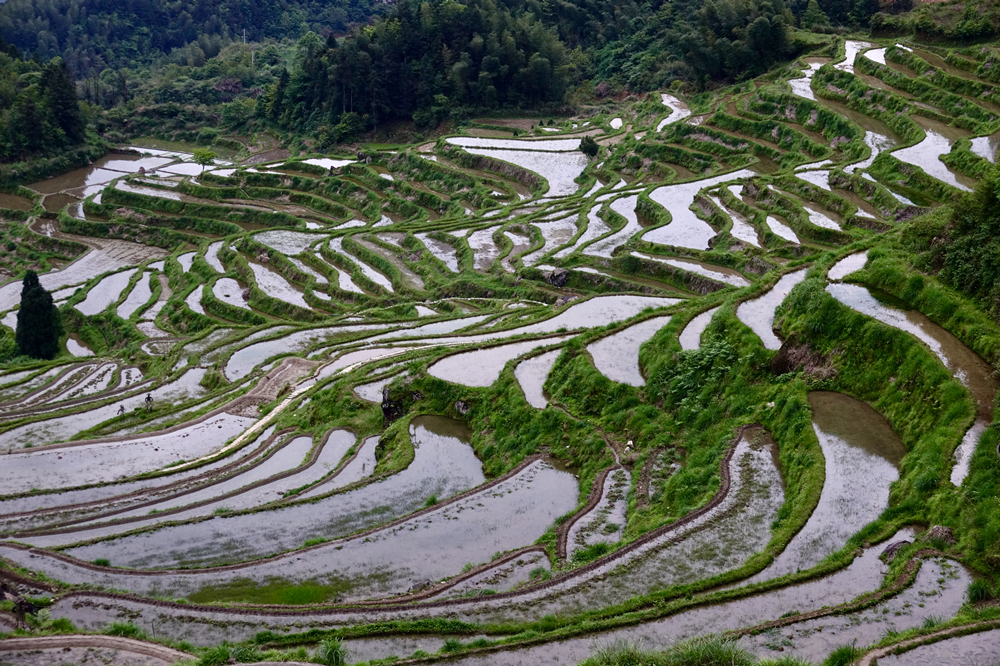 梯田海拔高度200米—1400多米,跨越高山、丘陵、谷地三种地形,最多有700多层。李仁奇 摄