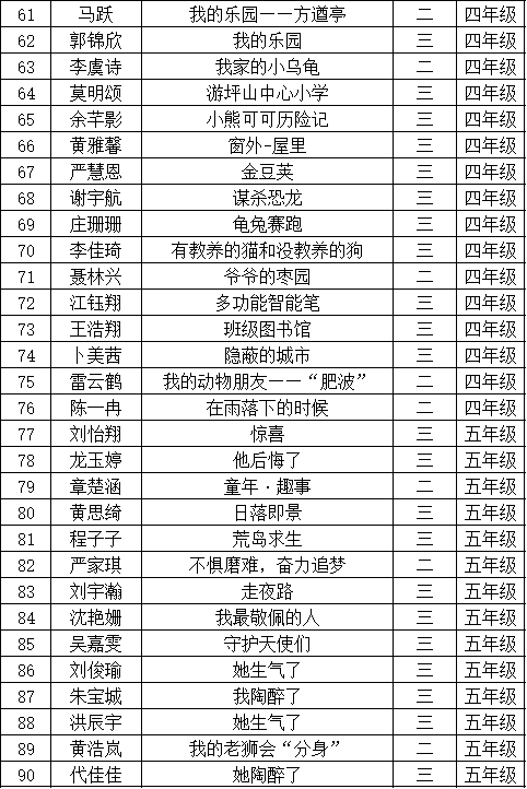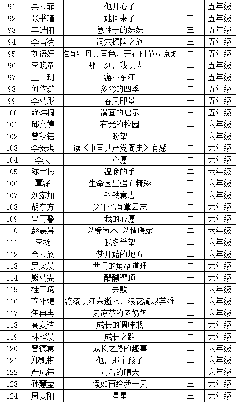 自2021年1月,活动征稿启动以来,获得了深圳市广大中小学生、教师、文学爱好者的热烈响应积极参与,吸引了深圳百余所学校的上万人关注报名。现公布坪山区坪山中心小学晋级复赛名单如下: