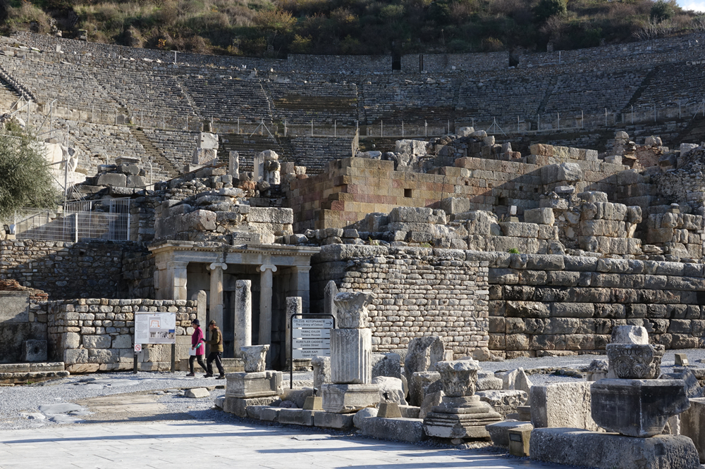 大剧场始建于公元前三世纪的希腊时代,罗马时期进行扩建和完善,是座可容纳25000名观众的半圆形建筑,是上演各种剧目以及市民参加公民会议的场所,还是角斗士与猛兽对决的场地。李仁奇 摄