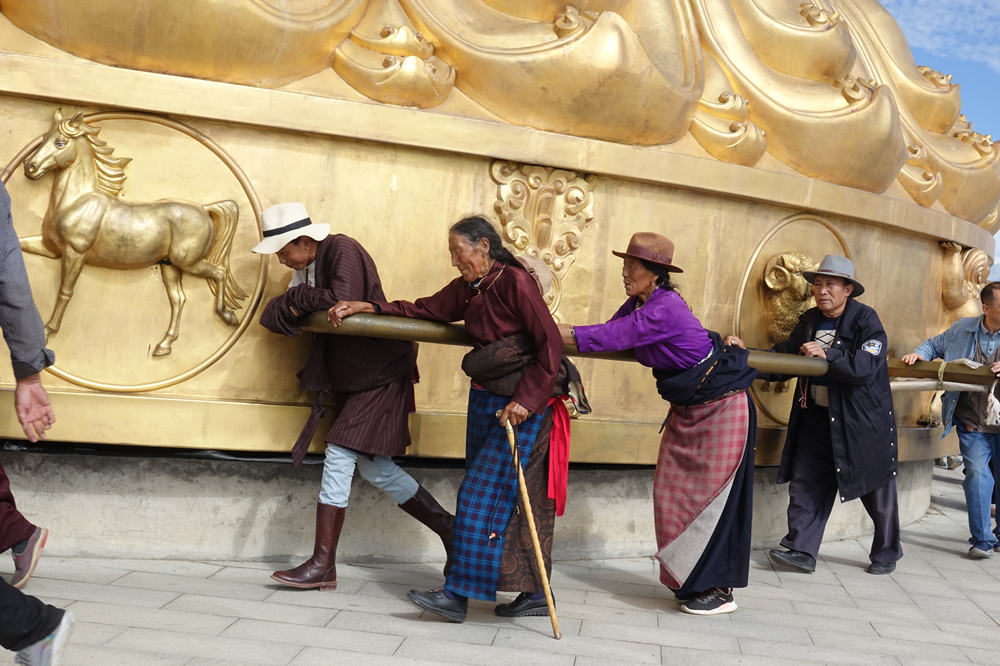 在藏区,转经已经不仅仅是一种礼佛念经的形式,更是信众的一种生活方式。转经筒,承载着他们对佛祖的崇拜,对未来的祈福,对美好未来的向往。李仁奇 摄