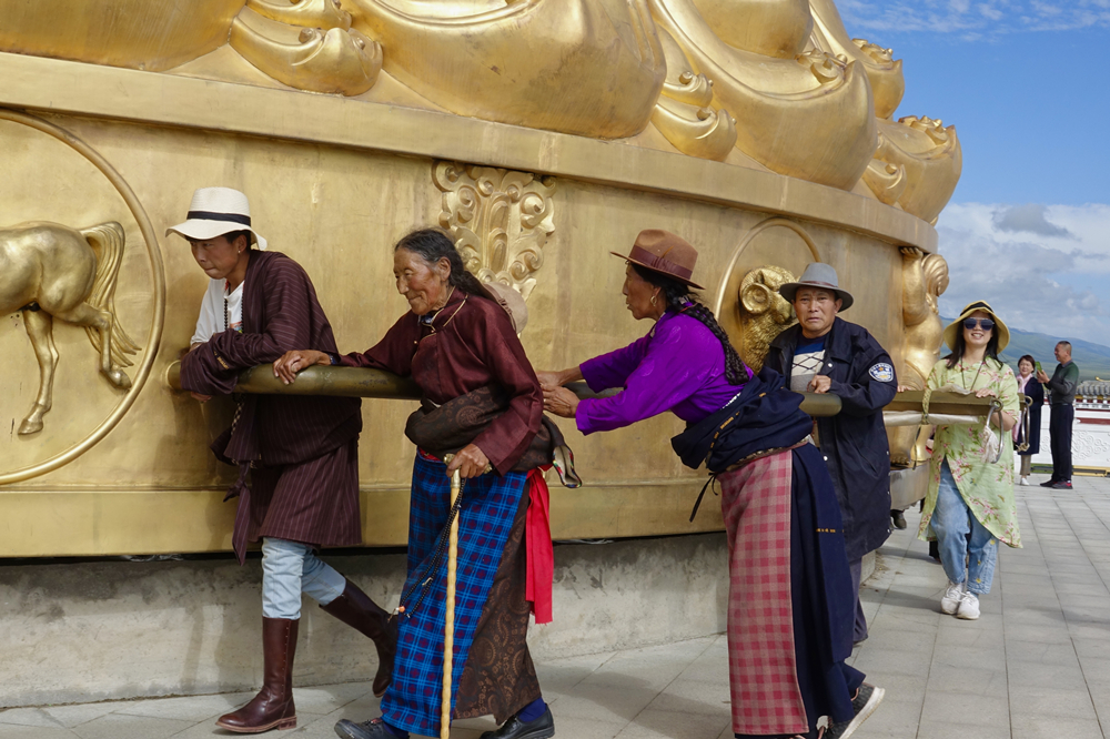 据传,转动经轮一周,即等同于念诵《大藏经》一遍。藏传佛教认为,“持颂真言越多,越表明对佛的虔诚,可得脱轮回之苦”。李仁奇 摄