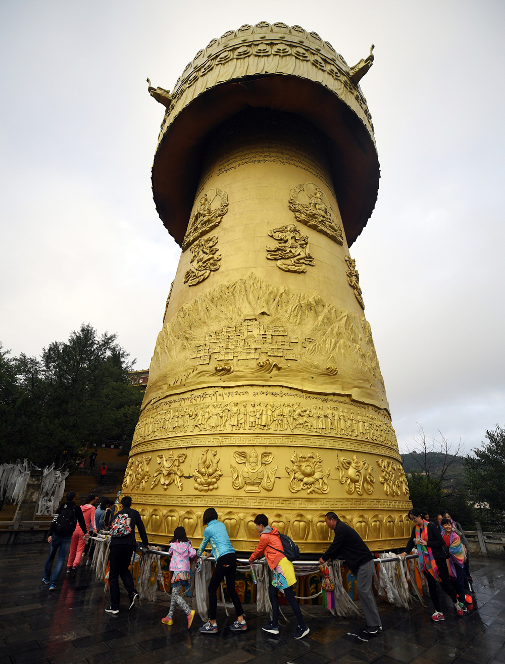 随着我国藏传佛教信徒聚居区经济社会的发展,从2009年起,在云南、青海、四川、甘肃四省先后建起了5座领先一时的“世界最大转经筒”。李仁奇 摄