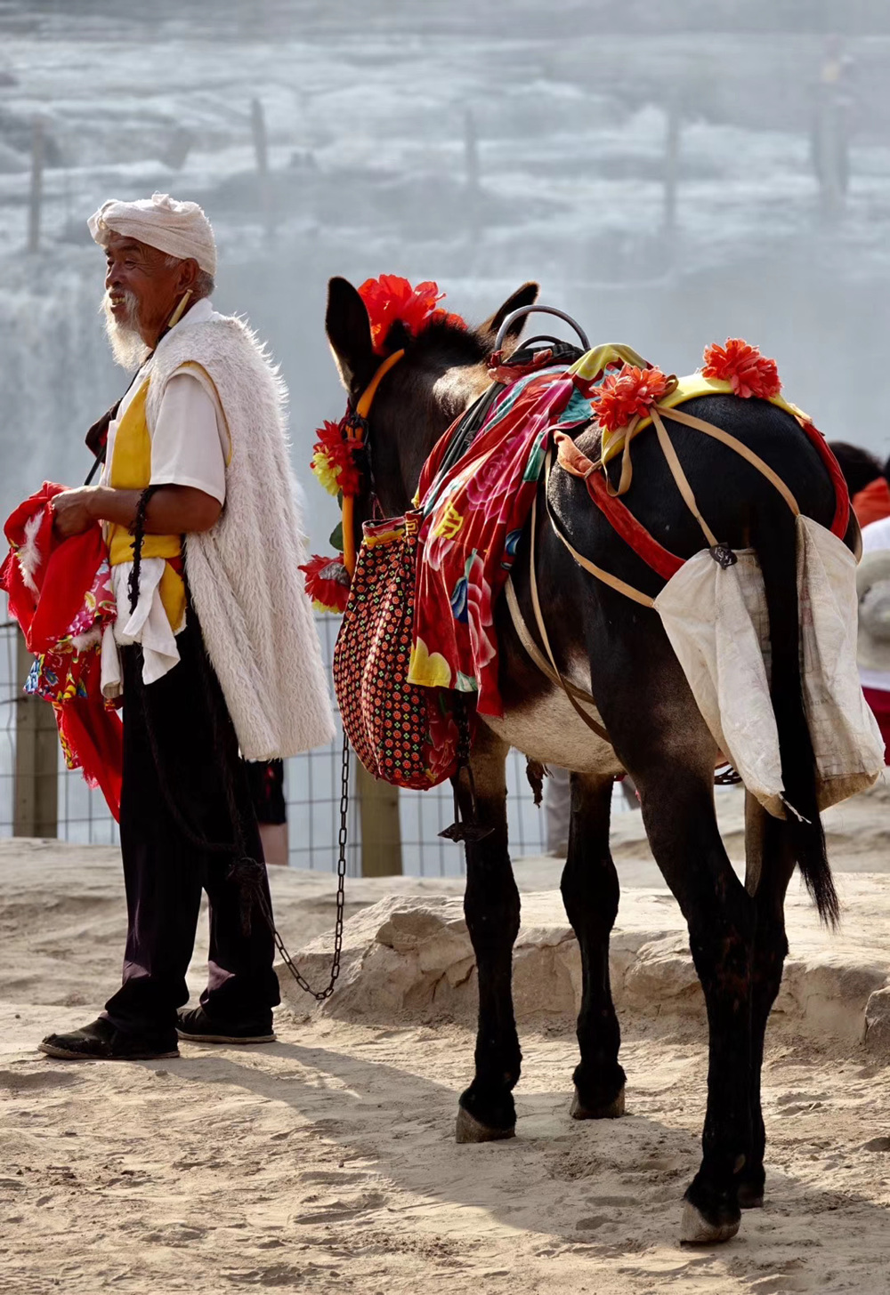 骑毛驴合影成为很多游客热爱的项目。李仁奇 摄