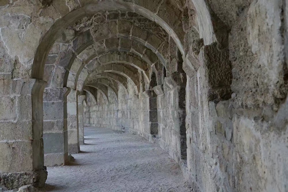 观众席顶端有59个拱形门相贯通的长廊,将整个剧场相连为一体。李仁奇 摄
