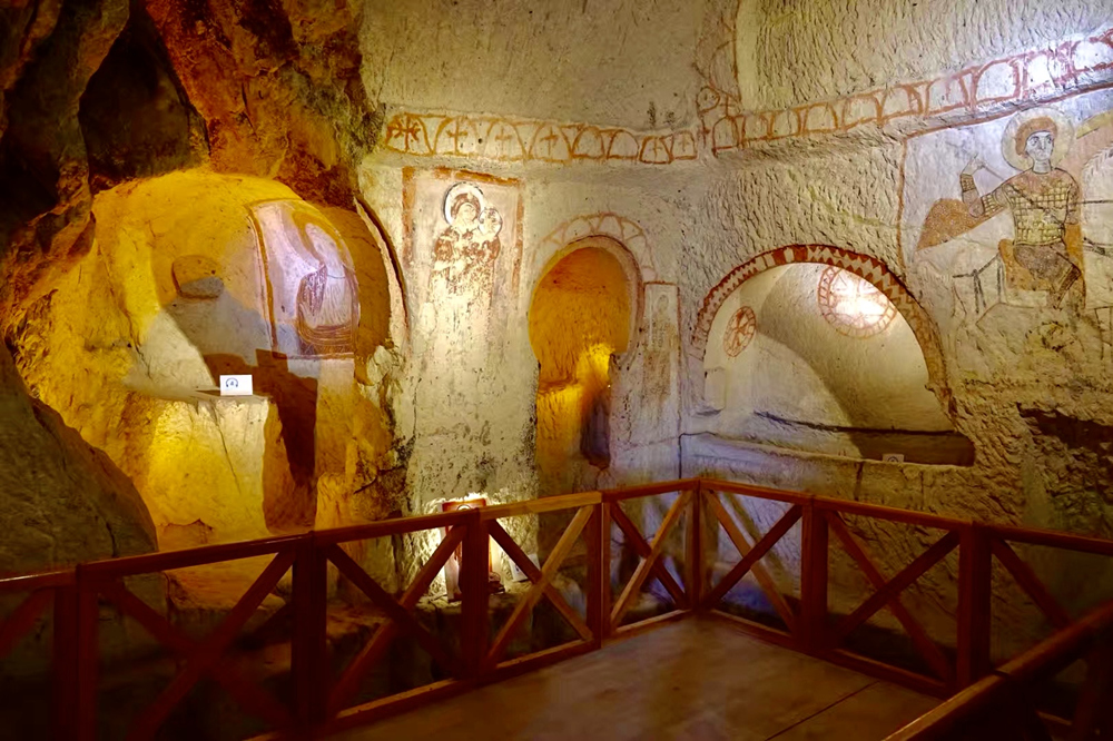 壁画一般是《圣经》中的人物画像,一部分仍色彩鲜明,清晰可见。李仁奇 摄