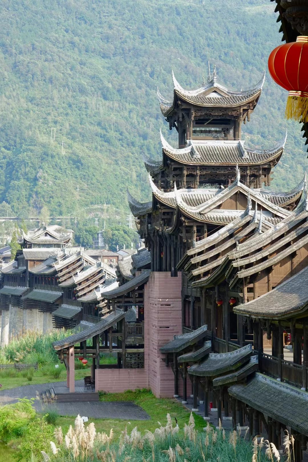 濯水廊桥长658米、宽5米,分为桥、塔、亭三部分,桥身为纯木结构,建筑材料之间以榫头卯眼互相穿插衔接,直套斜穿,牢固精密。李仁奇 摄