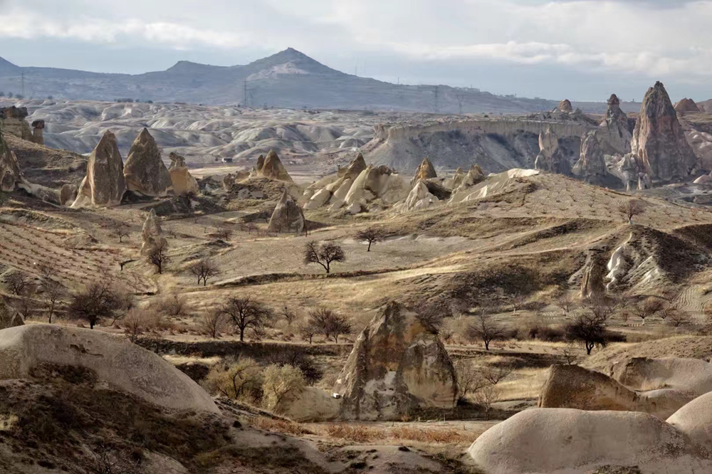 数亿年前,土耳其卡帕多西亚地区的艾尔吉耶斯火山喷发,改变了周围的地形,火山灰和熔岩堆积起来形成凝灰岩层。此后,被慢慢风化的岩石渐变成世界上独一无二的地质奇观——魔幻石柱林,人称“精灵烟囱”。李仁奇 摄