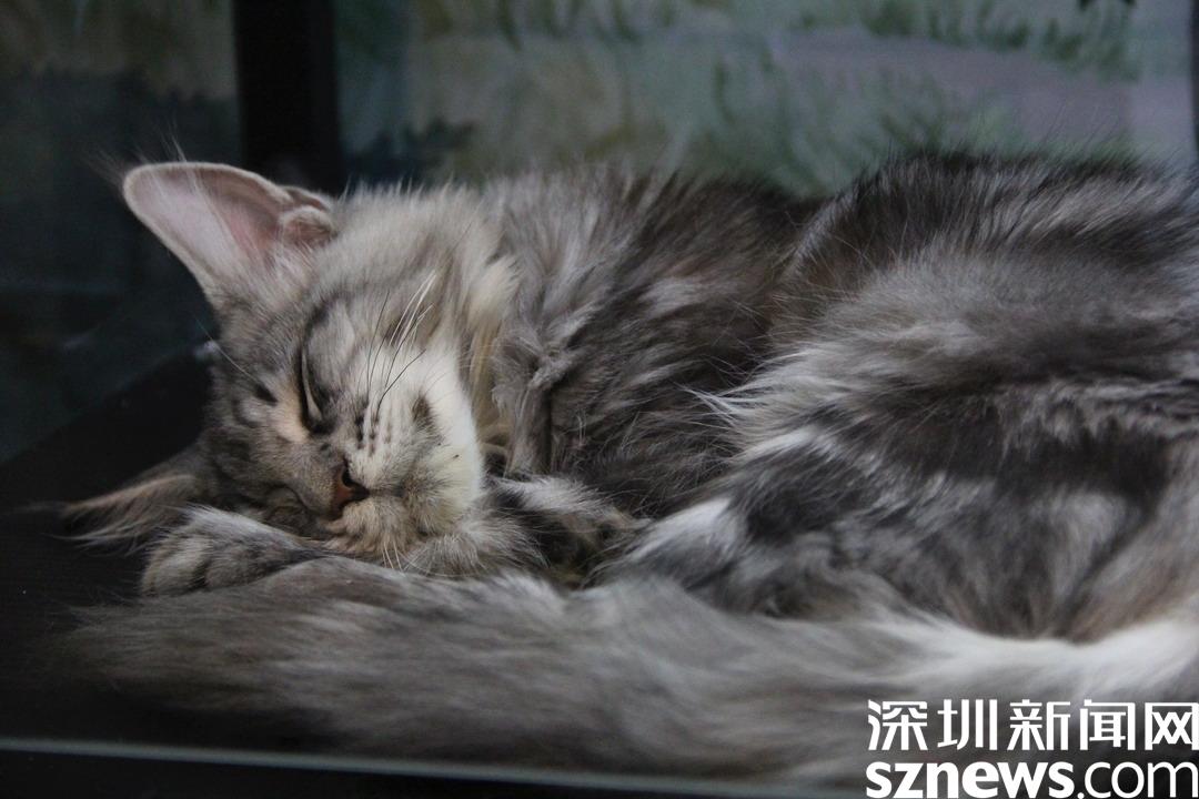 长相硬朗帅气的缅因“大佬”,在熟睡的时候也是一只“小甜心”。