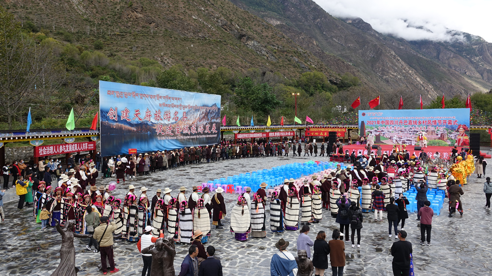 位于丹巴县城以北20多公里的巴底镇是遐迩闻名的“美人谷”,“2021丹巴嘉绒乡村风情节”开幕式最近在这里举行。李仁奇 摄