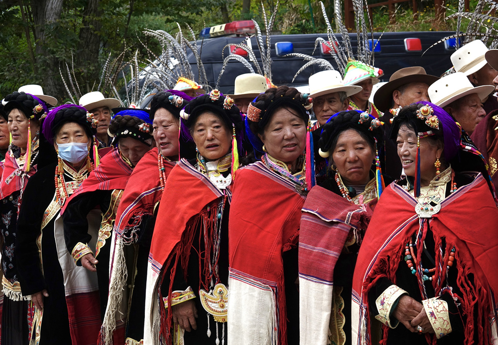 巴底镇二基坪弓箭舞表演队,他们将表演弓箭舞《嘉绒十三战神》。李仁奇 摄