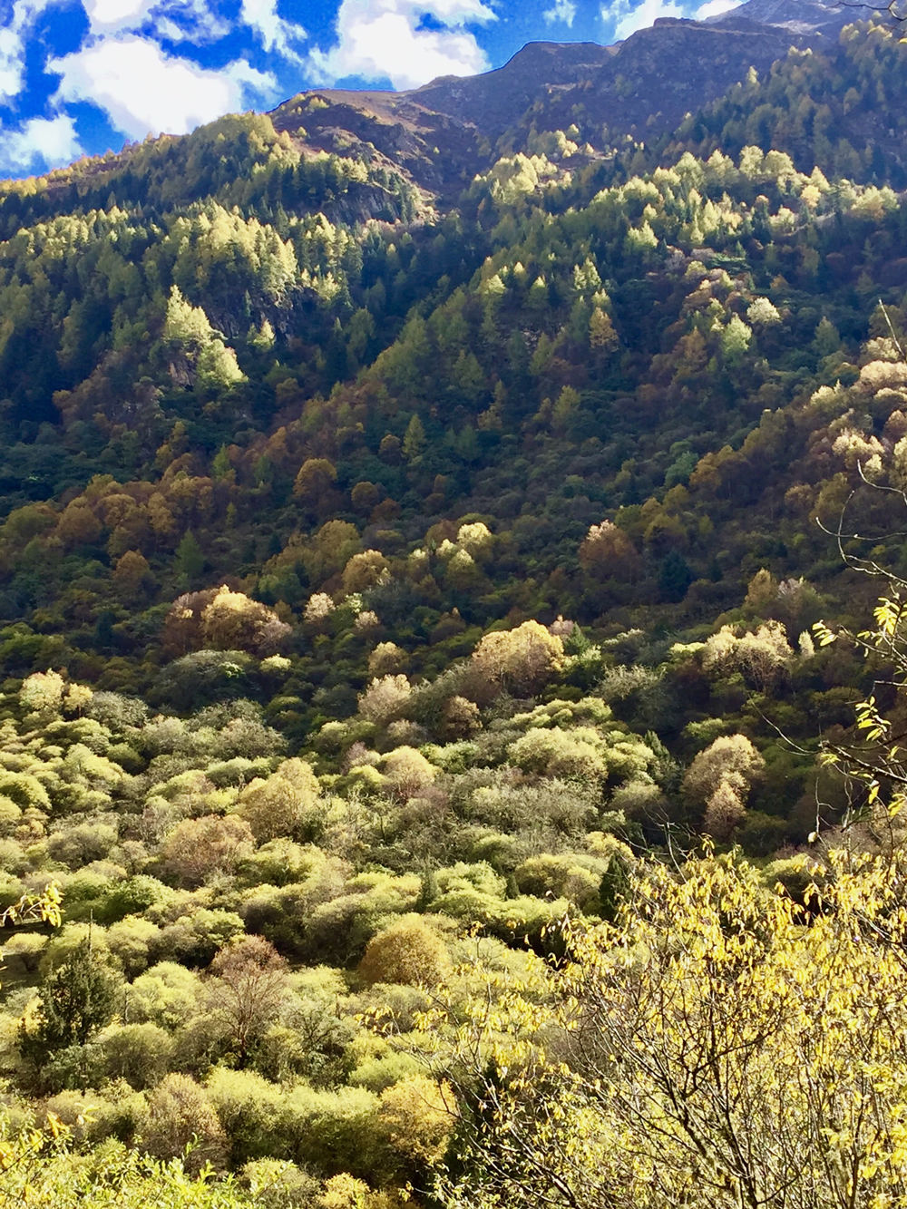 满地的金黄,成片的针叶迎风簌簌而下,像是一场金色的雨,满地的树叶像是一层地毯。李仁奇 摄