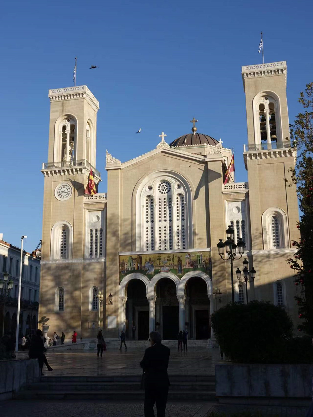 雅典在希腊独立之后建了许多优雅的新古典主义建筑,其中最著名的国家图书馆、国家科学院和雅典大学被称为新古典主义三部曲,这三座建筑连在一起,蔚为壮观,是这座城市的地标。李仁奇 摄