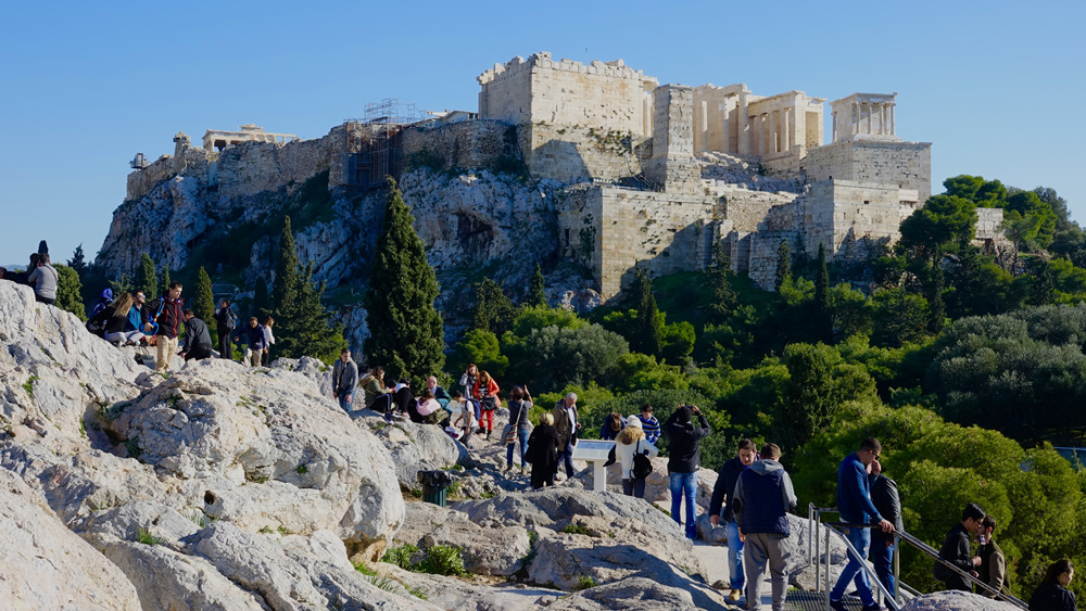 卫城山鹤立鸡群,近处街道和休闲广场人头攒动,富有生活气息。李仁奇 摄