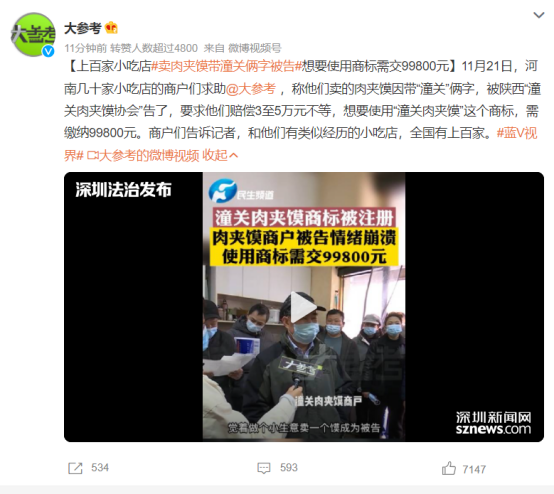 (相关报道:让众多店家崩溃的潼关肉夹馍商标许可费国家知识产权局回应了)