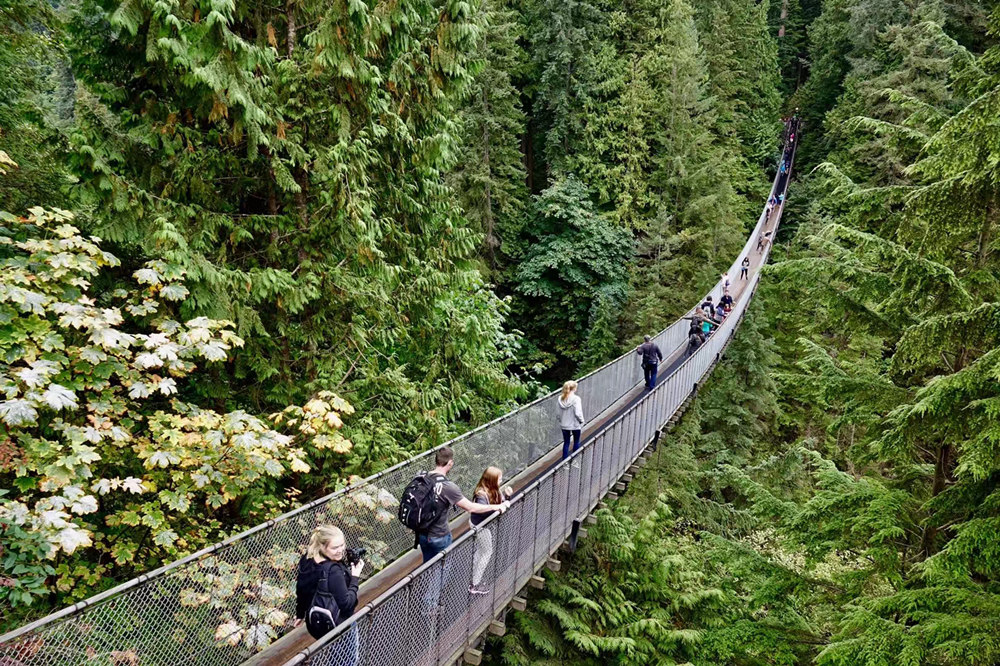 位于温哥华北部的卡佩兰奴吊桥,是温哥华最具代表性和震撼力的名胜之一。它横跨宽达450英尺的卡佩兰奴河,悬挂在230英尺高空。李仁奇 摄
