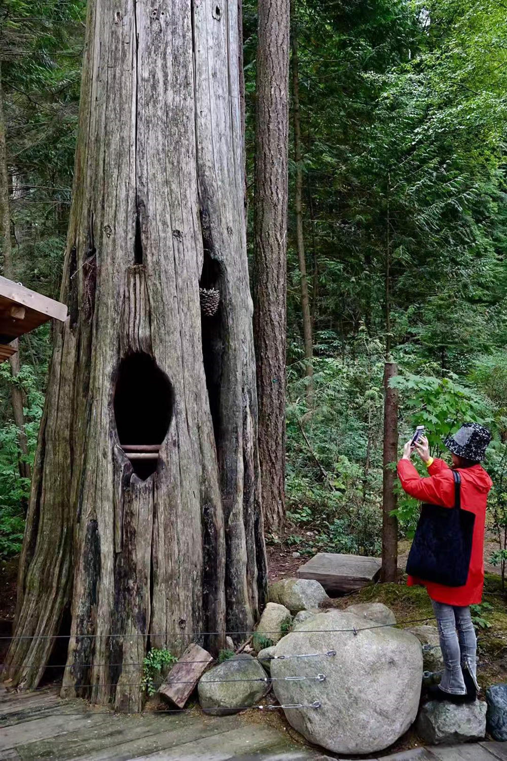 吊桥公园里面很多原始树木的年龄比他们现在所属的国度和城市的年纪还要大。直径超过一米的树彼彼皆是,其腰围连两个成年男人人都难以合抱过来。李仁奇 摄