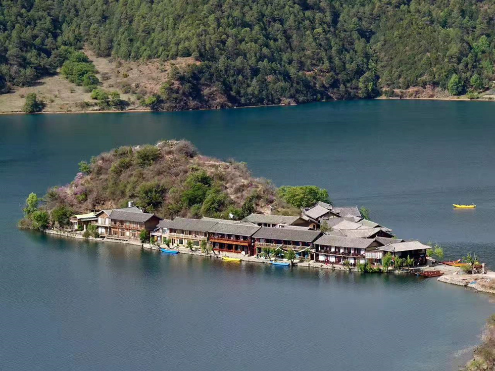 里格岛是泸沽湖内一个美丽的半岛,海岛三面环水,左右青山环抱,傍立格姆女神山。李仁奇 摄