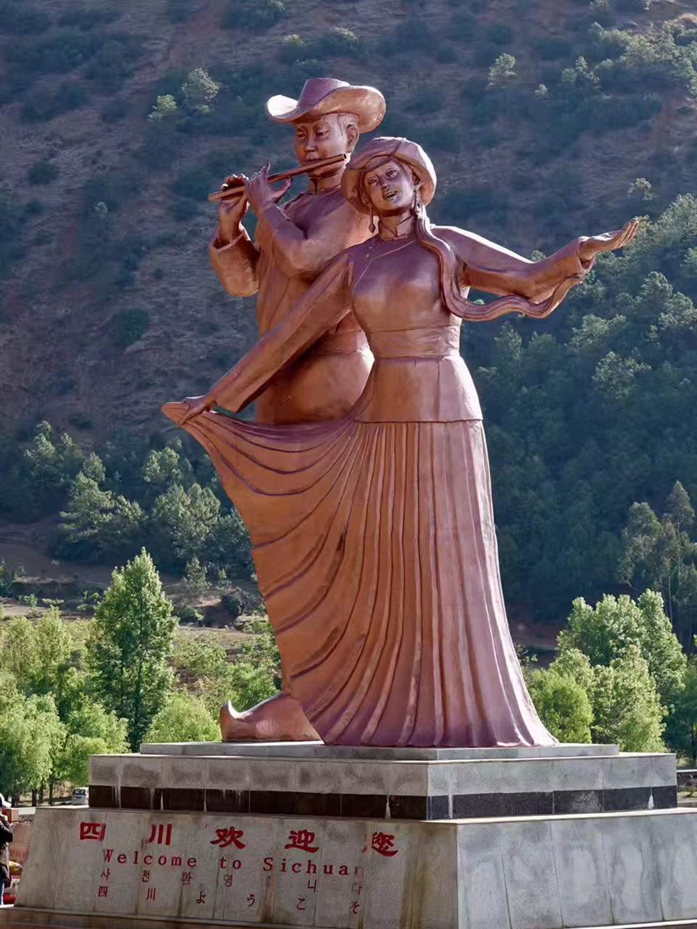 小洛水村是云南境内泸沽湖边的一个村寨,村口的这座雕像就是云南和四川的交界线。李仁奇 摄