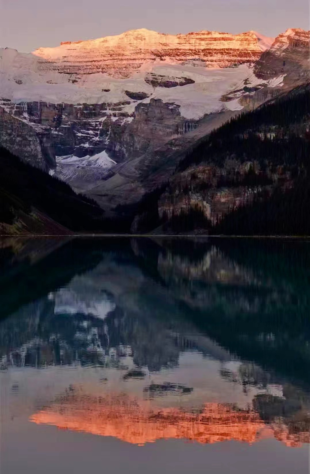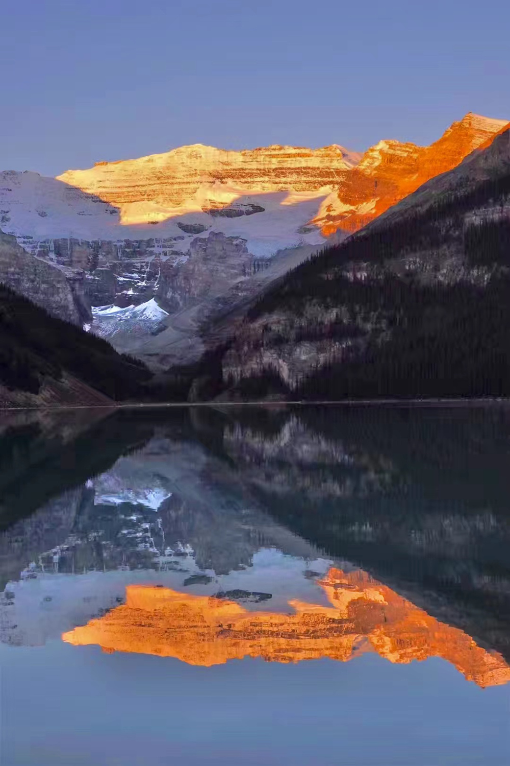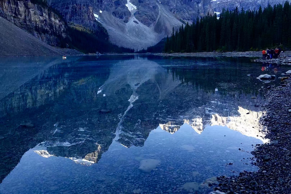 湖水晶莹剔透,在锯齿状的山谷的拥环下,就像一块宝玉。这块“国宝”被印在加拿大20元的纸币上。李仁奇 摄