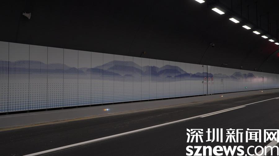马峦山隧道(盐田出口)两侧墙装饰以美丽的像素画。