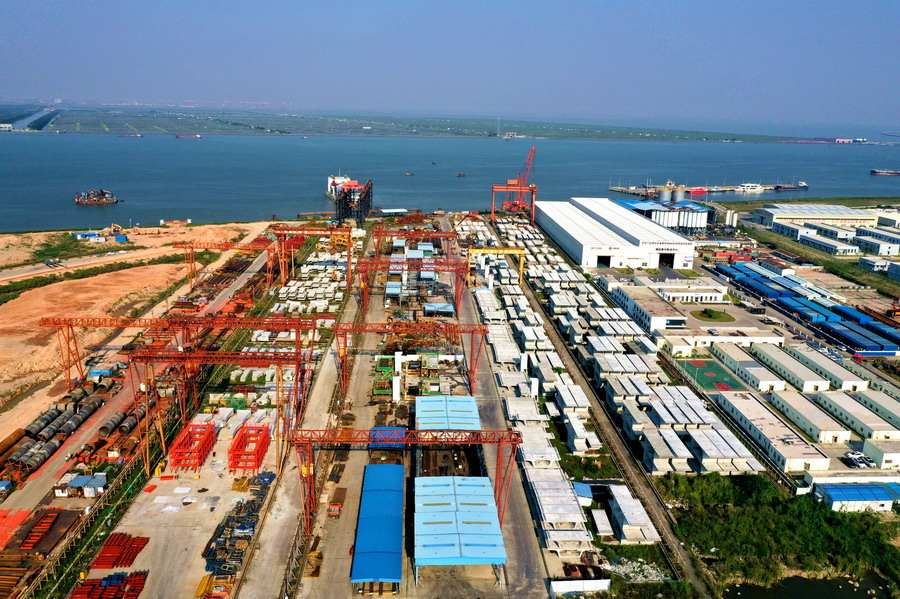 坪盐通道建设过程中,盐港东立交装配式施工图。(资料图)