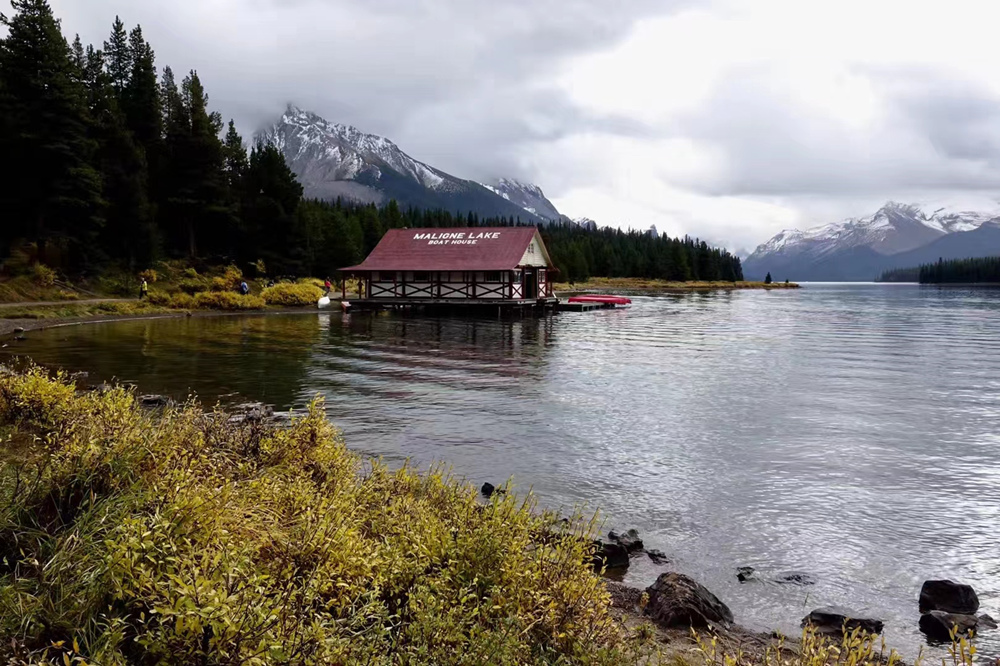 马林湖是加拿大落基山脉最大的冰川湖,宽22公里、面积2066平方米、深约1公里。在湖的周边能看到野生动物的踪迹,可以乘机动船游览,眺望两侧有冰川的群山。李仁奇 摄