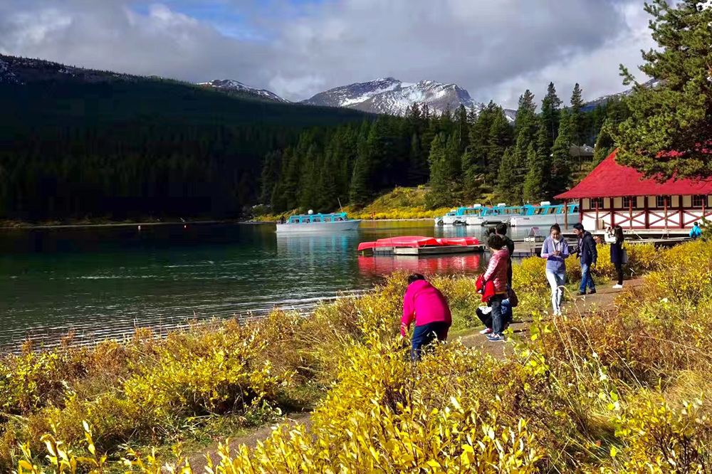 湖畔有许多步道,供游客沿湖游览;湖边的小木屋是游客驻足小憩的地方。李仁奇 摄