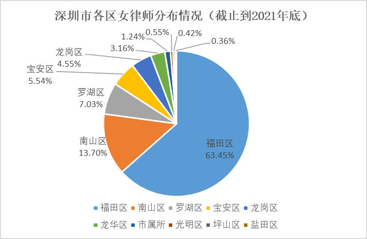 三、深圳女律师区域分布分析:超过60%的女律师在福田执业