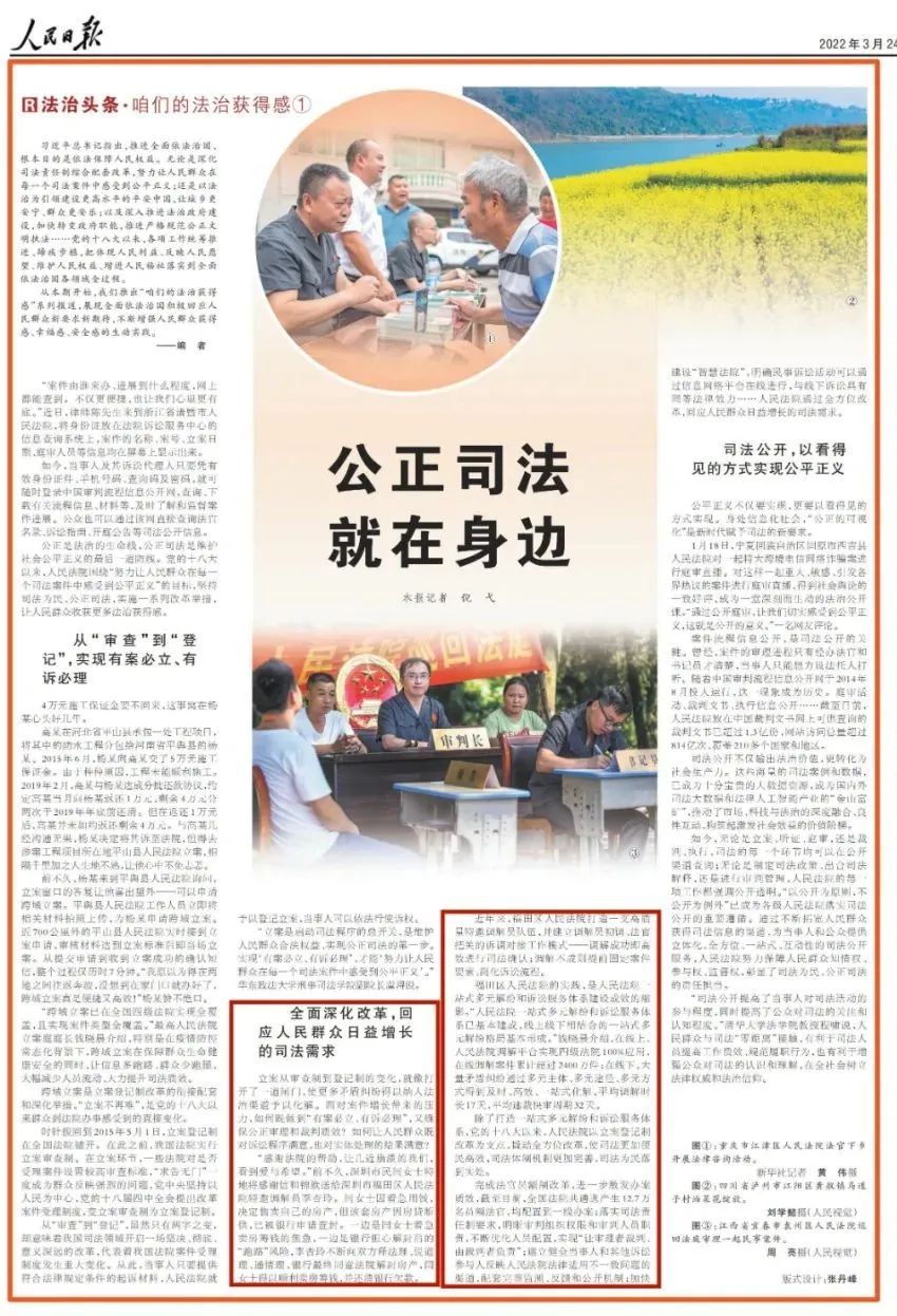 近日,人民日报推出“咱们的法治获得感”系列报道,展现全面依法治国积极回应人民群众新要求新期待,不断增强人民群众获得感、幸福感、安全感的生动实践。