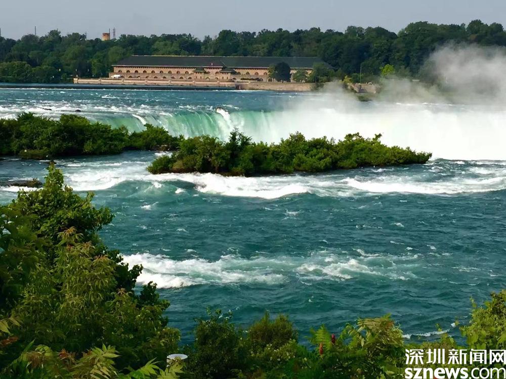 尼亚加拉河的水流冲下悬崖至下游重新汇合,在不足2公里长的河段里,以每小时35.4公里的速度跌荡而下,其间的落差达15.8米,1500立方米/秒至3000立方米/秒的丰沛水流,演绎出世界上最狂野的漩涡急流,经过左岸加拿大的昆斯顿、右岸美国的利维斯顿,冲过“魔鬼洞急流”,沿着最后的“利维斯顿支流峡谷”由西向东进入安大略湖。李仁奇 摄