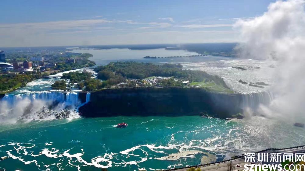 尼亚加拉瀑布其实由马蹄瀑布、美国瀑布、新娘面纱瀑布三个瀑布组成。马蹄瀑布在加拿大境内,如巨大的马蹄,瀑布发出的声响就象万马奔腾一般。美国瀑布在美国境内,由山羊岛隔开;新娘面纱瀑布,也在美国境内,由月亮岛隔开其他两瀑布。李仁奇 摄