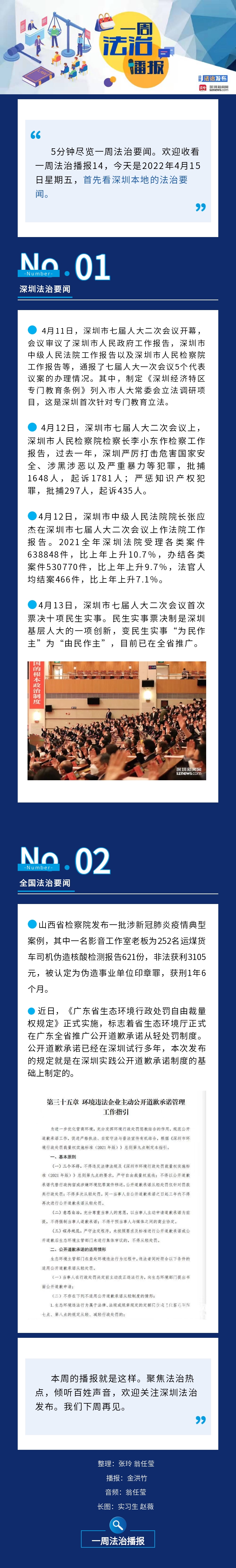 一周法治播报14: 深圳首次由人大代表票决年度民生实事