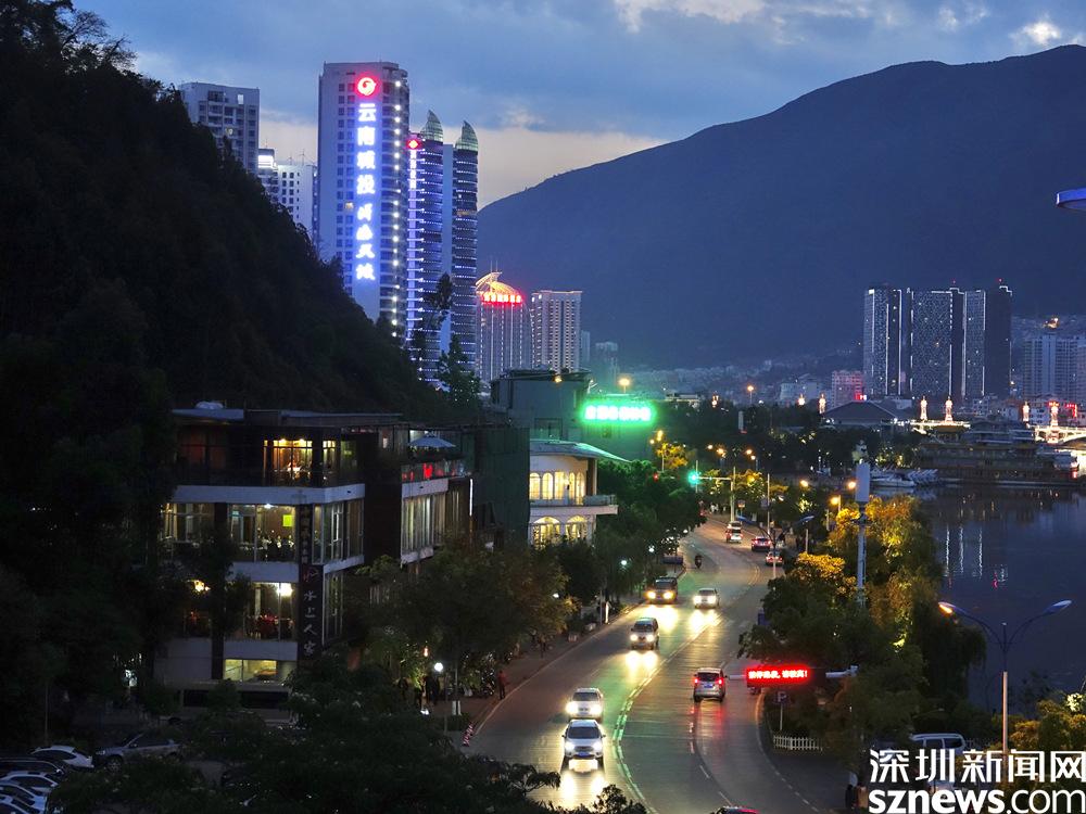 夜幕下,灯光耀眼,从洱海上吹来的阵阵凉风仿佛要将人们所有的忧愁烦恼都带走。李仁奇 摄