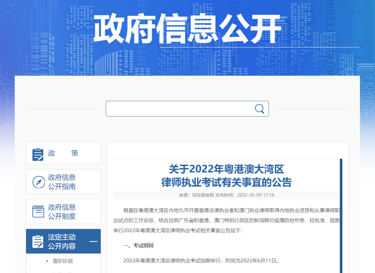 2022年粤港澳大湾区律师执业考试如期举行,时间为2022年6月11日。