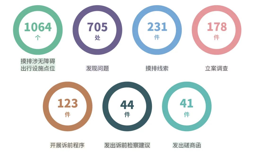 专项工作开展以来,深圳全市检察机关共摸排涉无障碍出行设施点位1064个,发现问题705处,摸排线索231件,立案调查178件,共开展行政公益诉讼诉前程序123件,其中发出诉前检察建议44件,发出蹉商函41件。