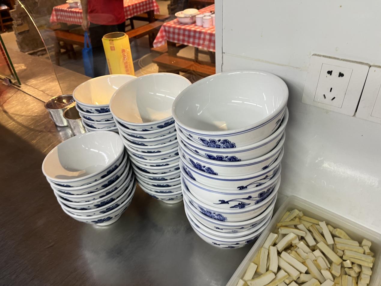 在操作区,执法人员指出餐具有水渍,存在食品安全隐患。同时他提醒,餐具不应过早暴露在无遮挡的环境中,应在快使用时才取出。