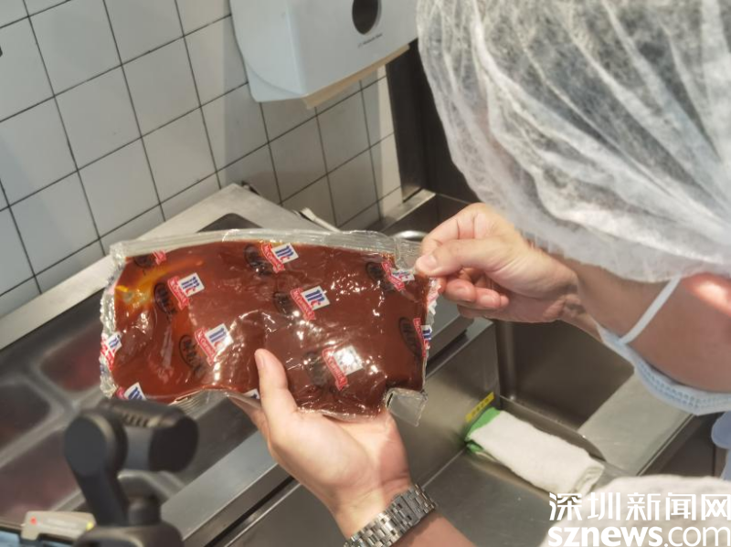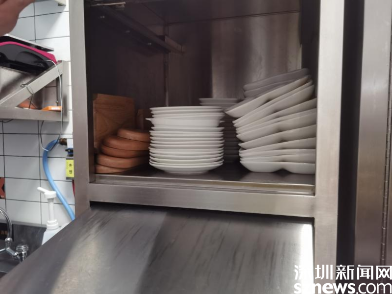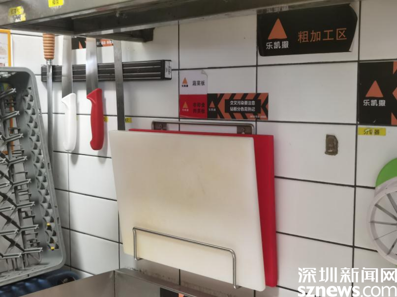 经过检查,执法人员发现该店的刀具和砧板均有颜色方便区分使用场合,餐具正确存放在保洁柜中,半成品冰柜中的食材分类摆放,随机抽查的酱料和半成品也符合食品安全要求。执法人员对该店的各项情况表示肯定。