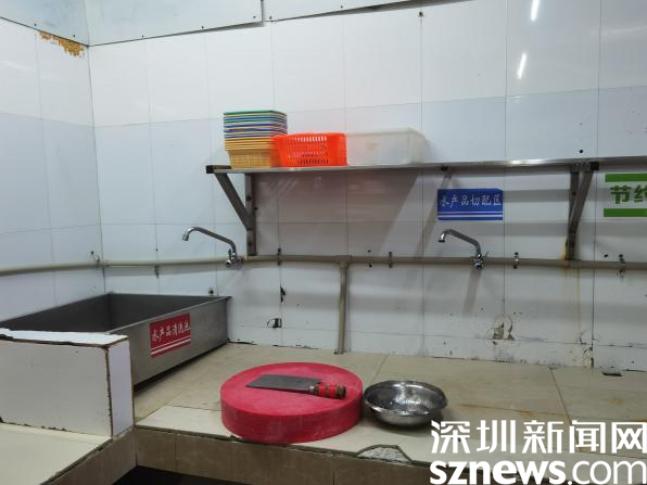 经检查发现,该餐厅后厨的菜类、肉类、水产品均有独立区域分开处理,刀具和砧板也按颜色区分,刀具还有专门的紫外线消毒柜,使用后及时消毒,保障卫生。