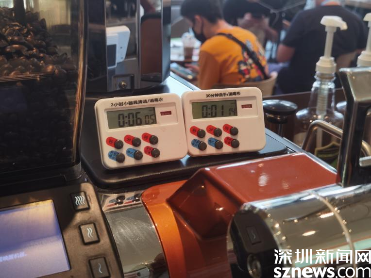 计时器提醒员工每隔2小时进行小器具清洁/消毒水,每30分钟洗手/消毒布。