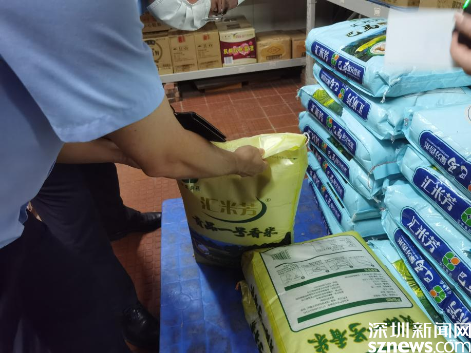 在进行防疫健康登记后,执法人员一行来到五谷芳乳鸽王海鲜餐厅后厨。后厨食品仓库安装有空调,以保持通风、控制湿度;食品摆放在货架上,按照要求隔墙离地。执法人员随机抽查了仓库中的调料和大米,均在保质期内。