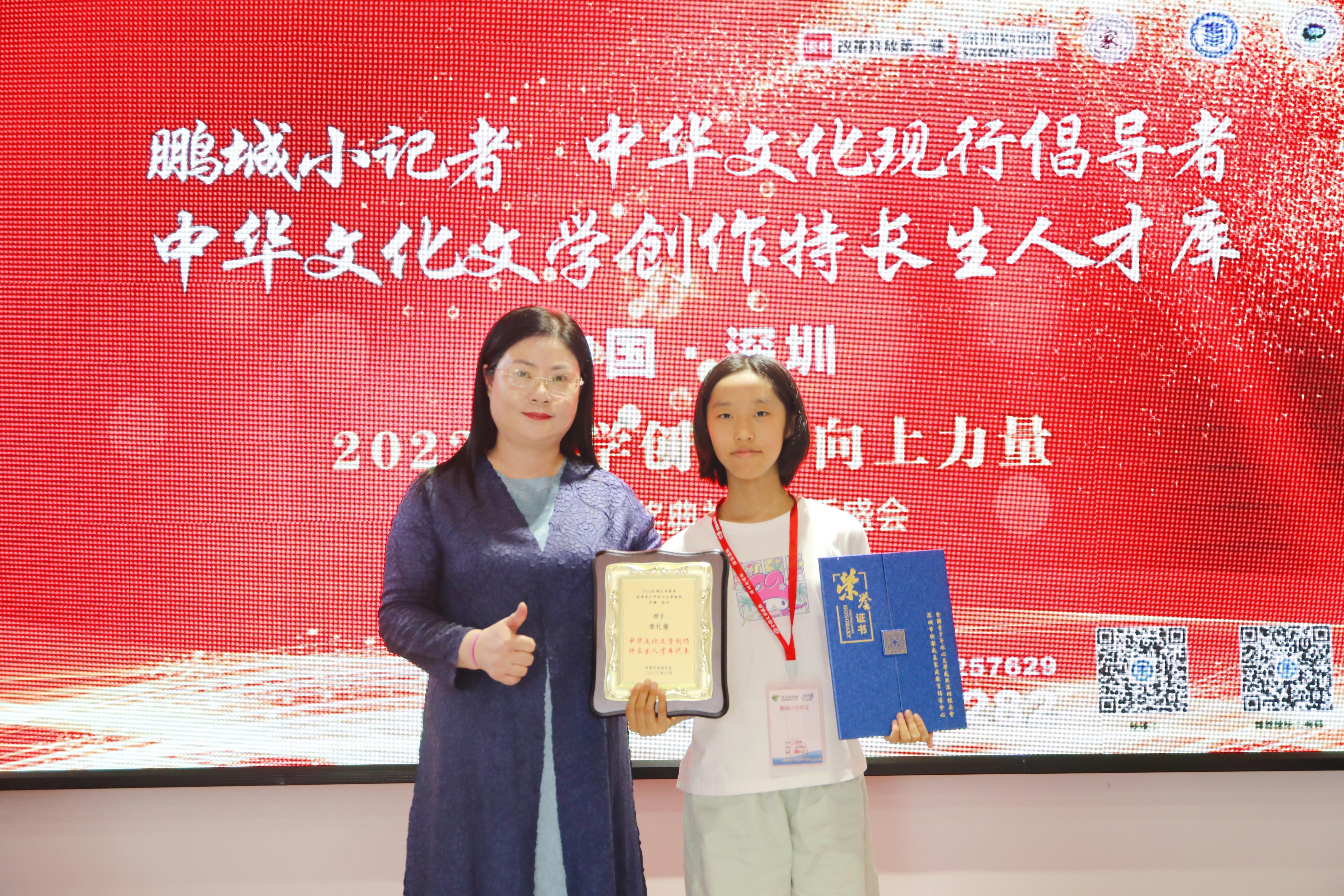 全国文学盛典联合发起人、创始人肖砚宁与获奖学生李礼爱合影