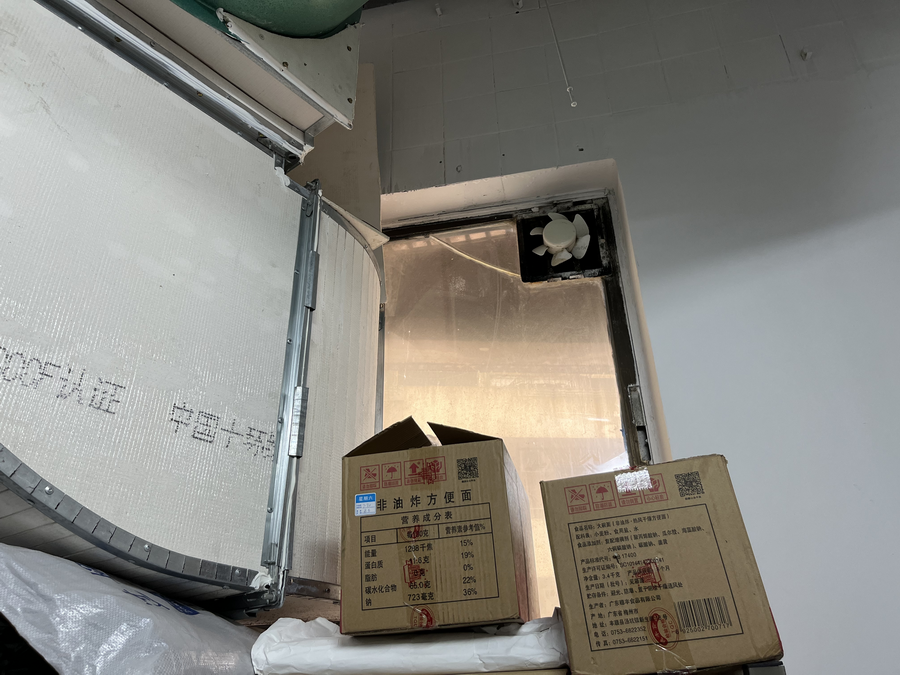 依照食品安全相关规定,执法人员来到餐厅后厨,依次检查了凉菜专间、洗菜间、粗加工间、操作间、洗碗间、生食间、仓库等区域。检查发现,该餐厅后厨的分区明确、布局合理,操作空间较大,整体环境良好。但是执法人员指出,后厨凉菜专间和仓库仍然存在个别问题。首先,凉菜专间的门无法自动闭合,专间里外的空间未能很好分隔,可能会对专间内的操作环境造成污染;其次,在仓库,执法人员指出三点细节问题:一是调料标签未标注具体日期,二是大米存放未隔墙离地,三是抽风机未打开。此外,在查看生食间时,后厨负责人表示该专间未启用;执法人员表示,如果重新启用,需按照专间标准,调整温度及门的闭合方式等。