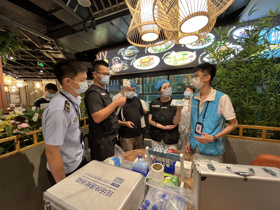 执法过程中,“蓝马甲”快检人员也来到现场,对食材进行抽检。据悉,本次共抽检6类蔬菜样品,结果均为阴性。快检人员表示,如果市民对自己购买的食材有疑虑,也可以联系各区快检室送检。目前福田区共有10个检测点可供检测。